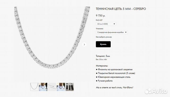 Теннисная цепь 5 мм 55 см Not Blanc