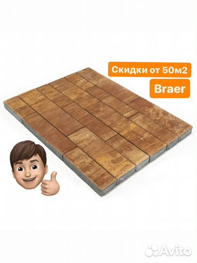Брусчатка Прямоугольник Браер 200х100х60мм