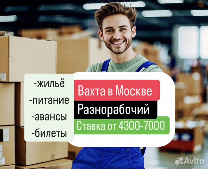 Разнорабочий вахта в Москве с питанием
