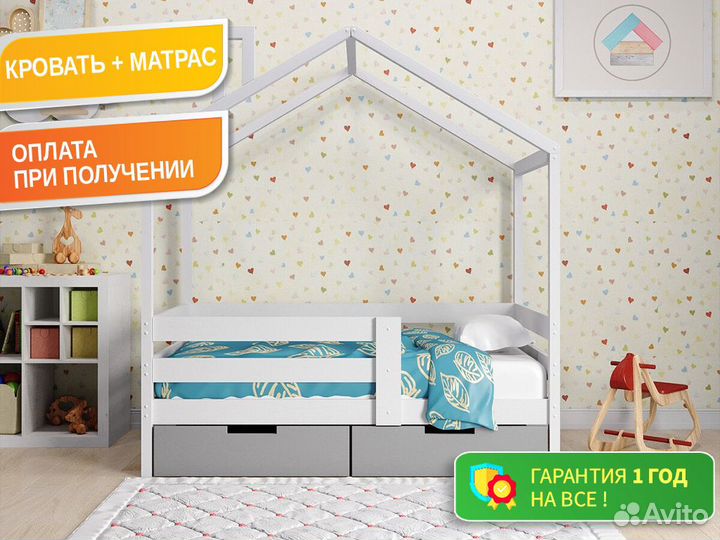 Детская кровать домик изберезы + матрас